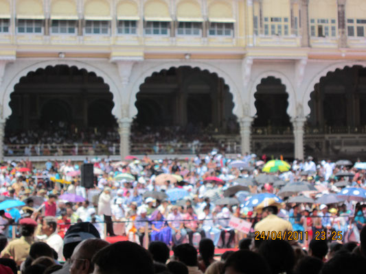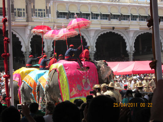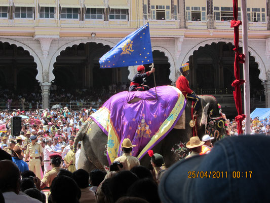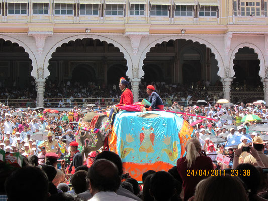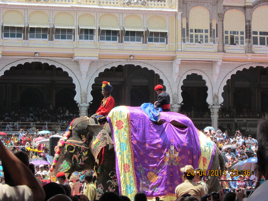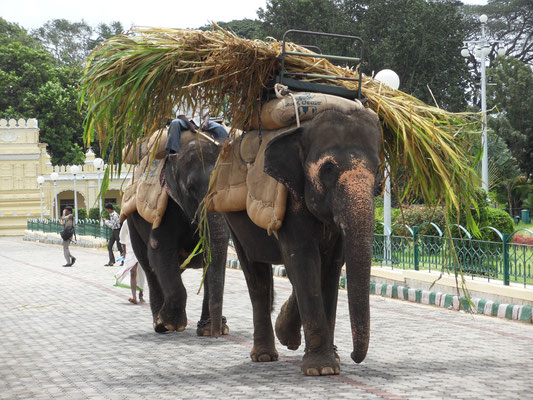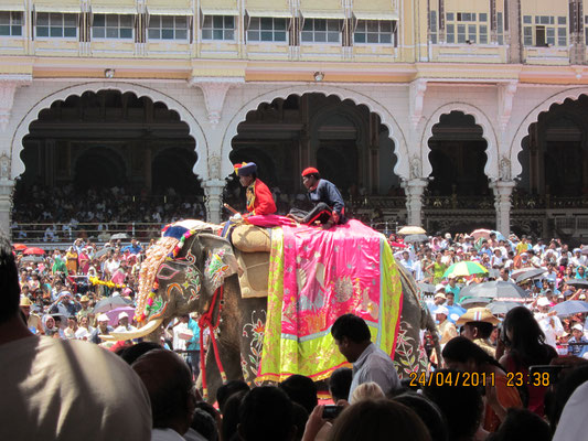 Im Mittelpunkt der Stadt steht natürlich der Palast, in welchem die Dynastie der Wodeyars in der Zeit vom 14. bis ins 20. Jahrhundert hinein residierte und der noch heute ihr Zentrum ist - vor allem Nachts, wenn er hell erleuchtet in den Abendhimmel strahlt. Neben zahlreichen Alleen und Parkanlagen inspirierten uns dann aber vor allem der farbenprächtige Markt und das bunte Treiben der Händler, die hervorragende indische Küche und die gute Hotellerie sowie die Sehenswürdigkeiten in und ausserhalb der Stadt. Wer alte Tempelarchitektur und die hinduistischen Epen und Mythen mag, der ist hier richtig!
